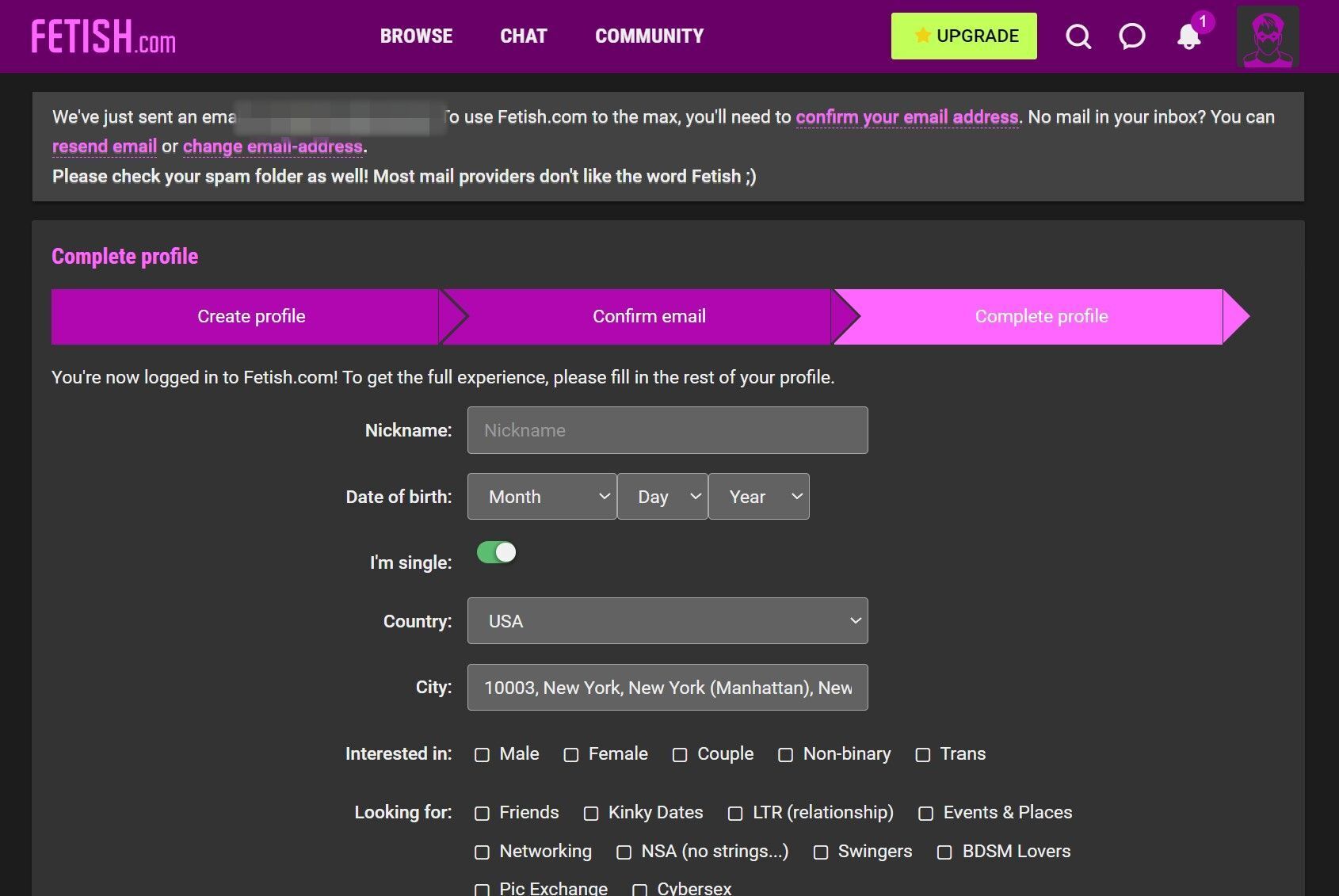 Signing up for Fetish.com is a breeze, taking just a few minutes to complete. Unlike other dating sites that bombard you with endless questionnaires, Fetish.com only asks for essential information. You'll need to specify your location, birthday, and sexual preferences. The site is open to all gender identities, ensuring an inclusive and diverse community from the start. You'll also have the opportunity to indicate who you're interested in and what you're looking for on the site, selecting from a pre-made list of answers. This streamlined process allows you to dive into the world of kinks and fetishes without any unnecessary hassle.
