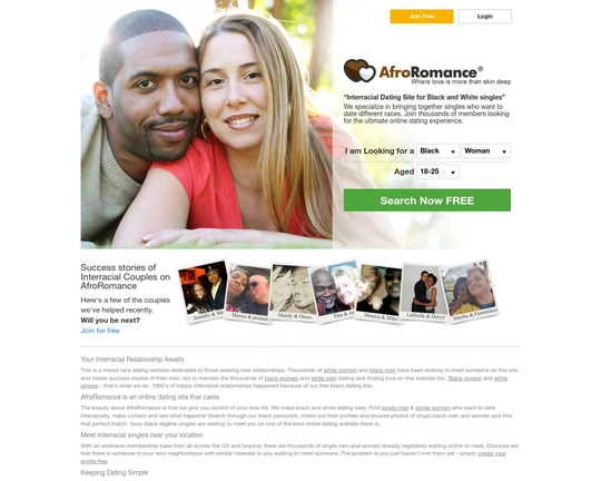 According to AfroRomance, thousands of white women and black men have used the site to find and start relationships. It also caters to black women and white men seeking interracial relationships. AfroRomance claims to make interracial dating easy by providing a dedicated platform for black and white singles looking to date someone from a different racial background.