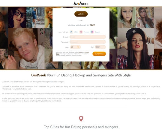 LustSeek.com is an online sex dating and hookup site designed to connect like-minded singles and couples looking for casual encounters and no-strings-attached relationships. As one of the premier sex dating sites, LustSeek provides a fun, friendly, and judgment-free environment for adults seeking intimate encounters and sexual exploration.The site attracts a diverse community of open-minded members of all ages, orientations, kinks, and backgrounds. Whether you're looking for a one-night stand, friends with benefits, swinging, or just want to spice up your love life, LustSeek makes it easy to find others seeking the same things. The site's anonymity and privacy features ensure members can explore their fantasies in a safe, discreet manner. Read our LustSeek.com review to learn more about the registration process, features, membership options.