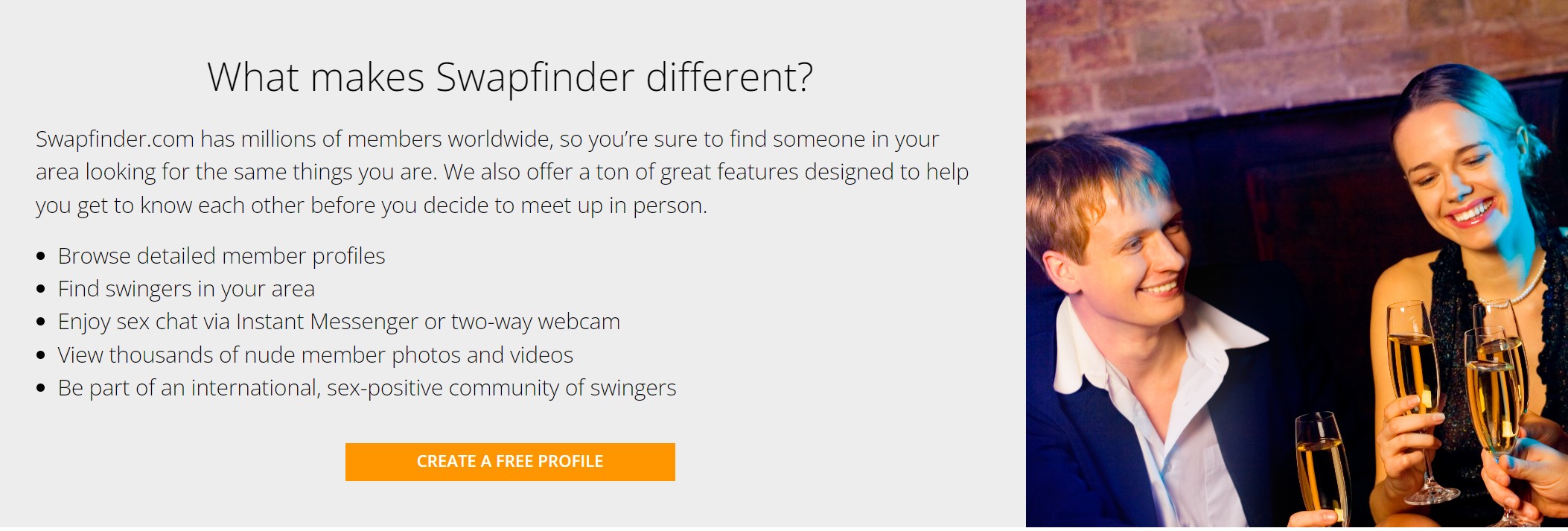 SwapFinder.com is an online dating and social networking site for swingers and sexually adventurous couples. If you and your partner are looking to spice up your sex life by swinging or adding a third partner, SwapFinder can connect you with like-minded people in your area. With its extensive range of features and a vast user base, this swinger dating website offers an exciting and safe environment for those seeking to explore their deepest desires. SwapFinder connects sexy, adventurous couples for no-strings-attached fun, friendship, and more. We decided to check out SwapFinder to see if it lived up to the hype. In this SwapFinder.com review, we'll take you through the signup process, key features, membership benefits, and share our overall opinion after using the site. Read on to find out if SwapFinder is right for your swinger lifestyle needs.